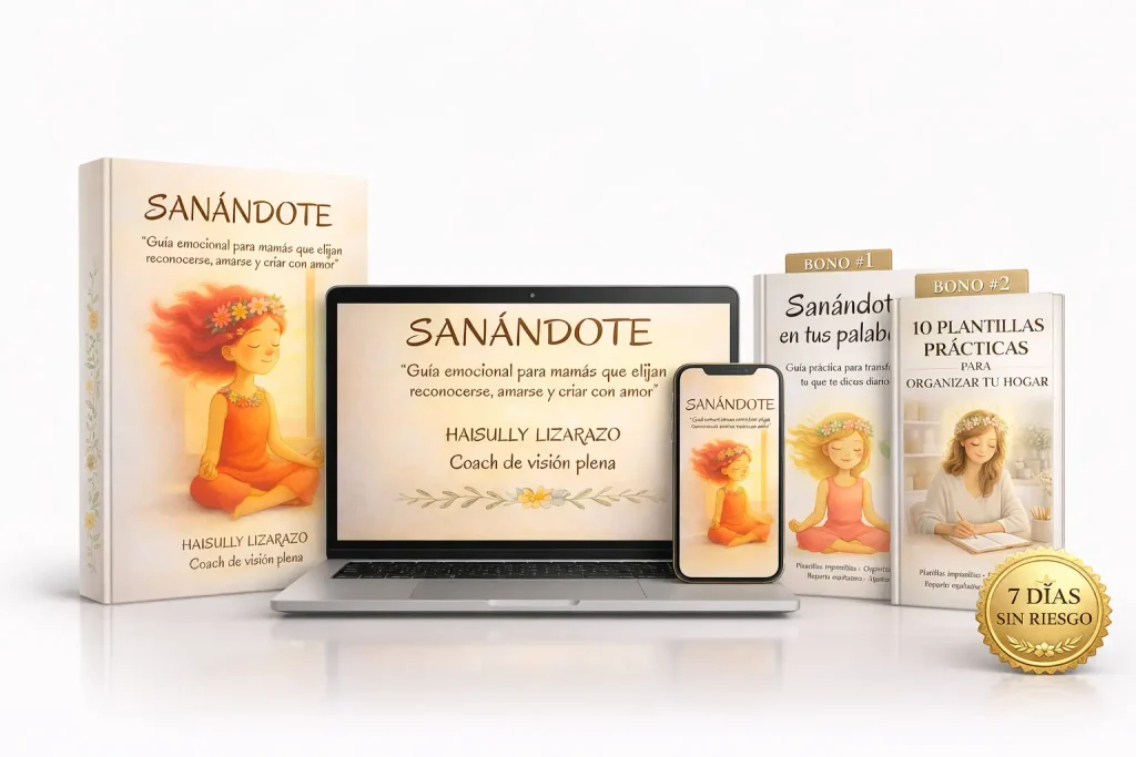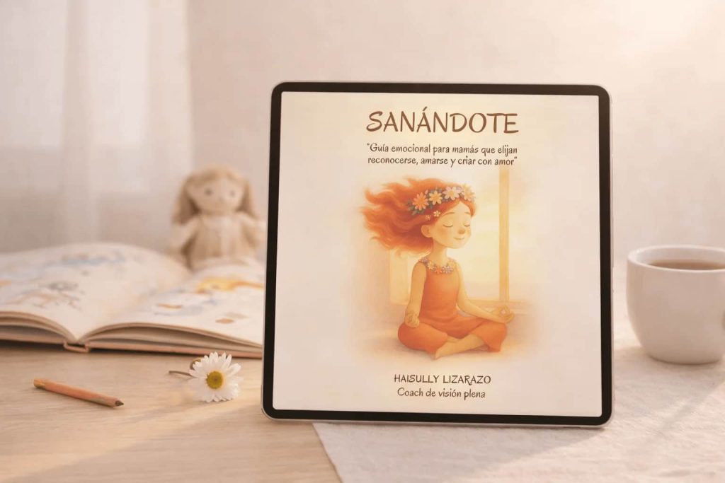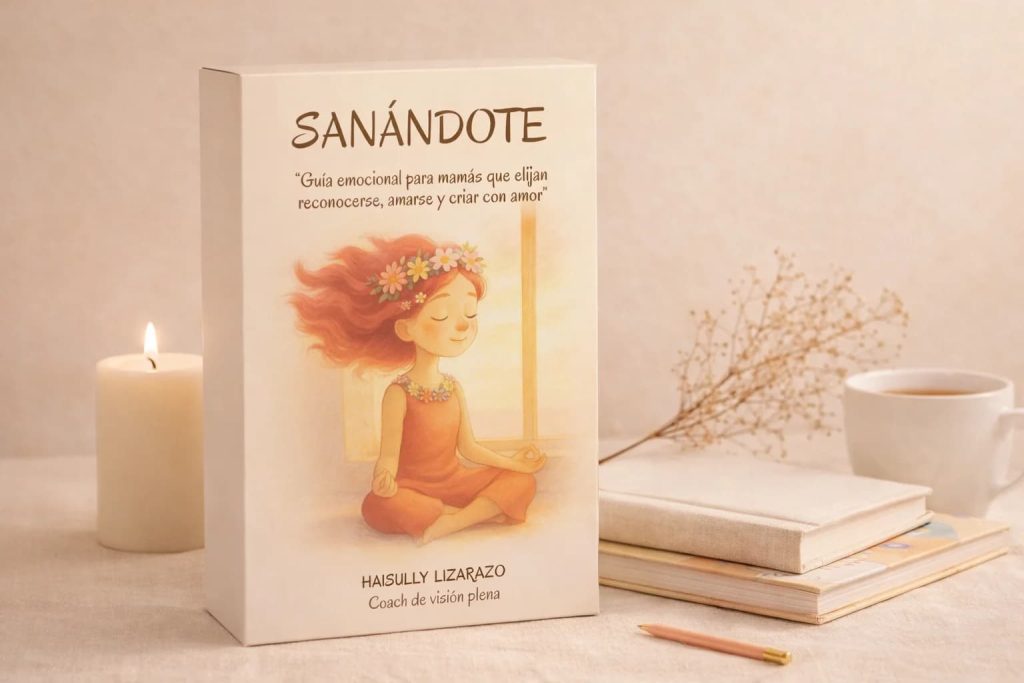 Sanándote es una guía práctica y emocional creada especialmente para mamás que aman profundamente a sus hijos… pero sienten que se han ido dejando a sí mismas en el camino.
